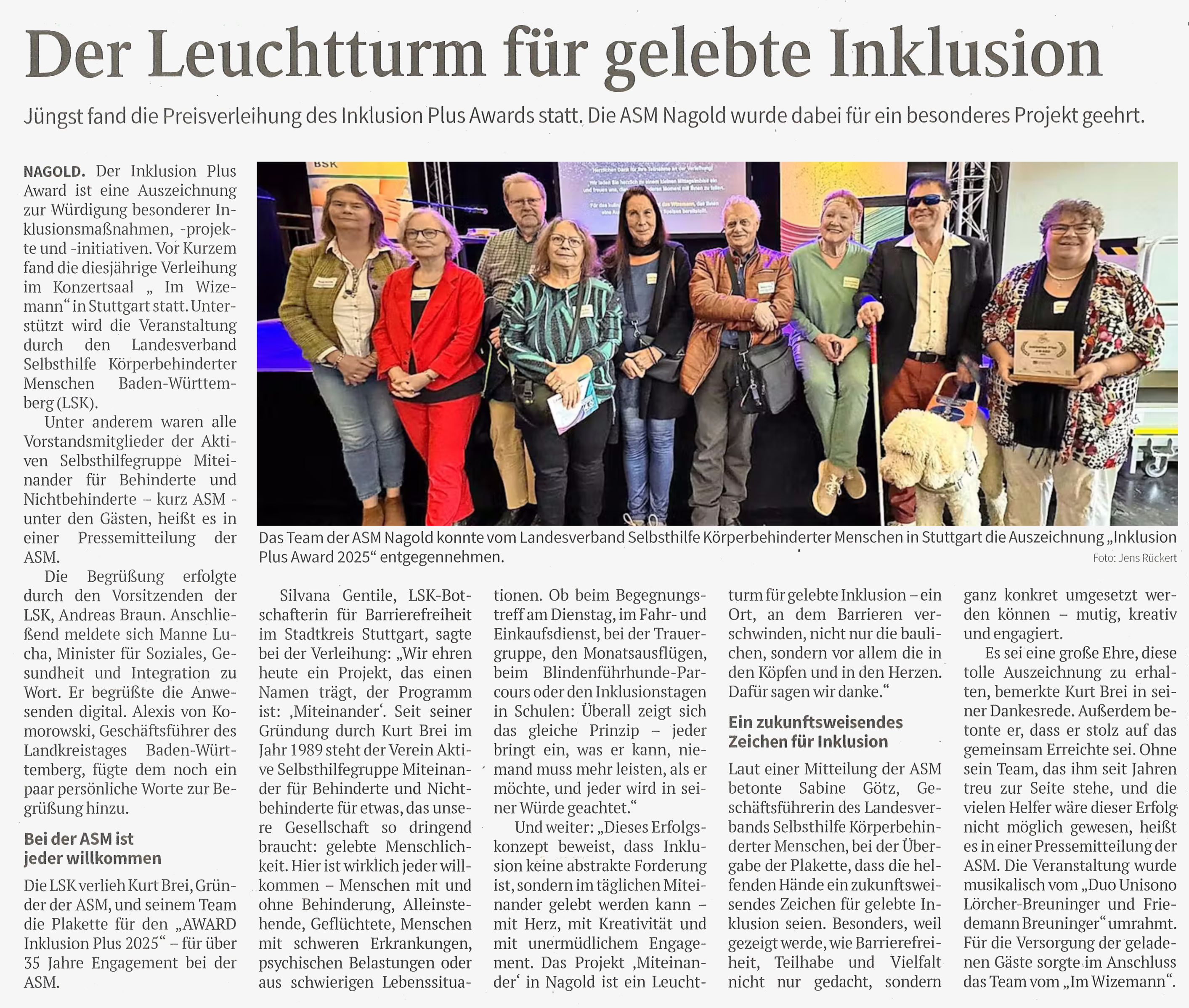 Aktive Selbsthilfegruppe Miteinander für Behinderte und Nichtbehinderte e.V. (ASM) in Nagold