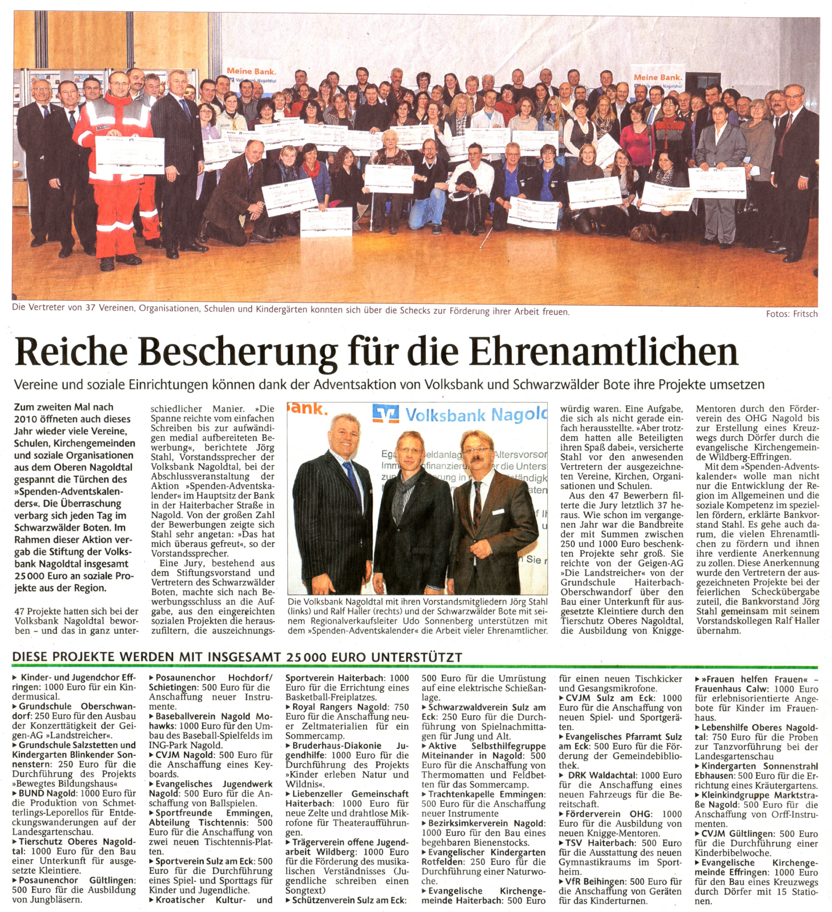 10. Spenden-Adventskalender der Volksbank HNR eG |