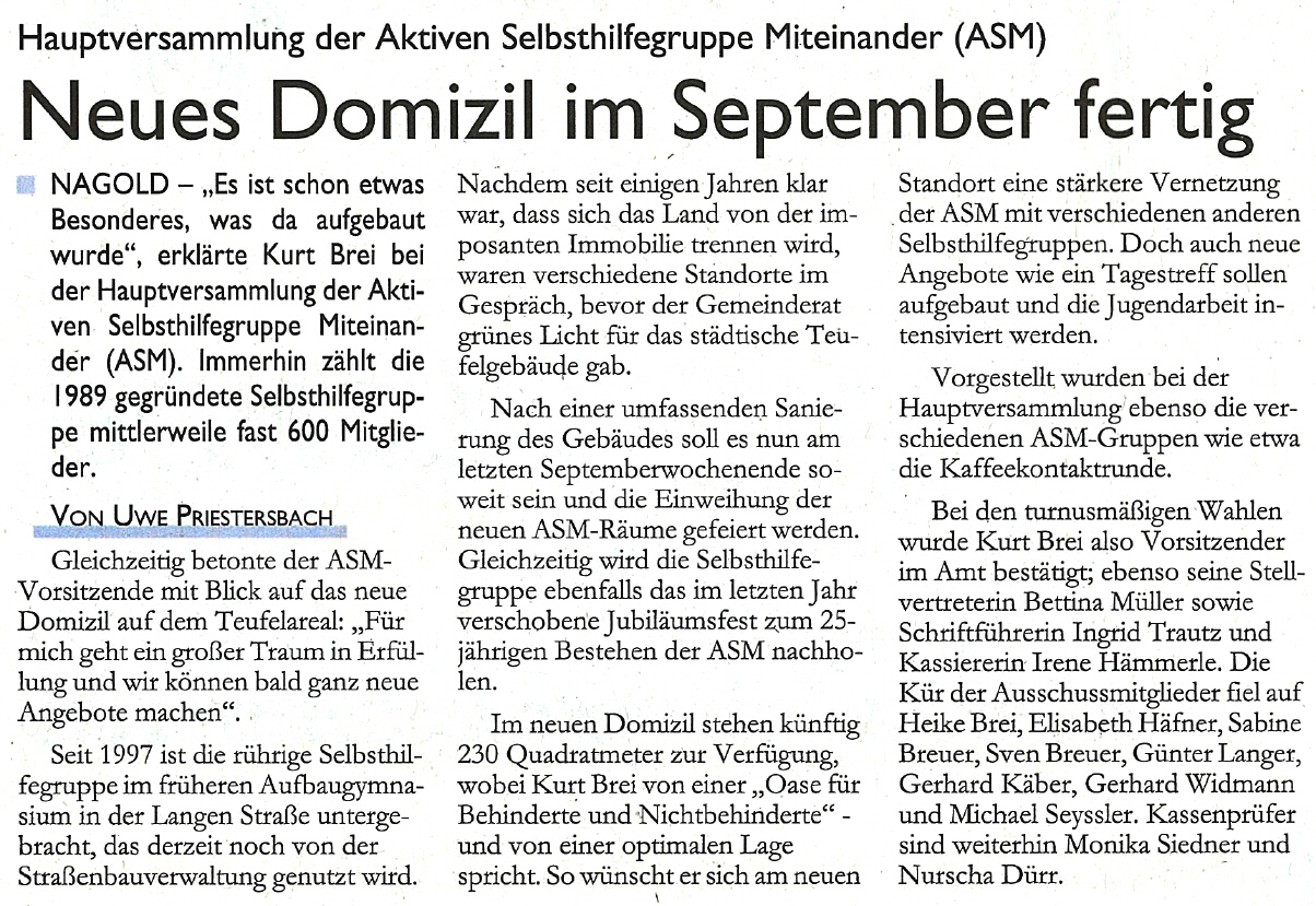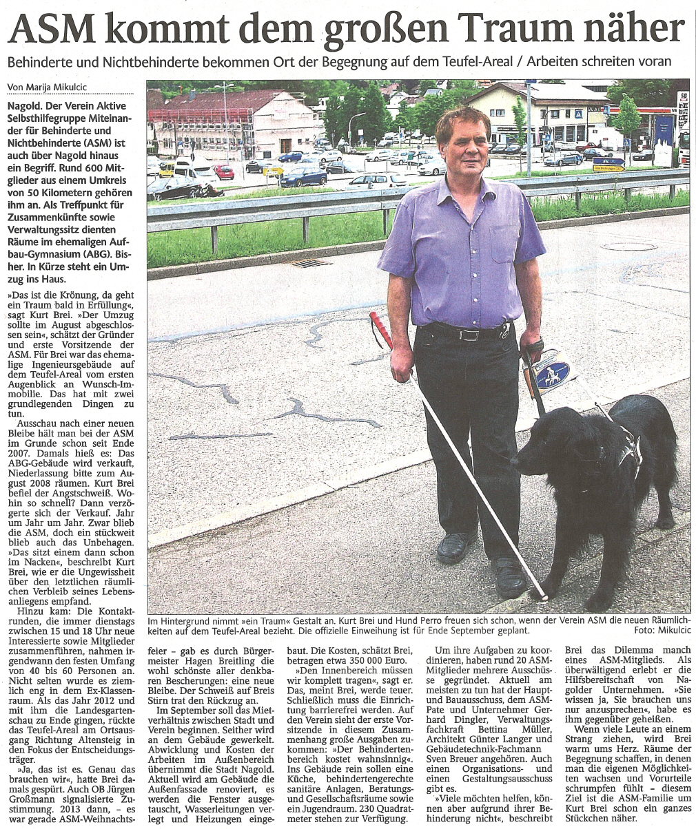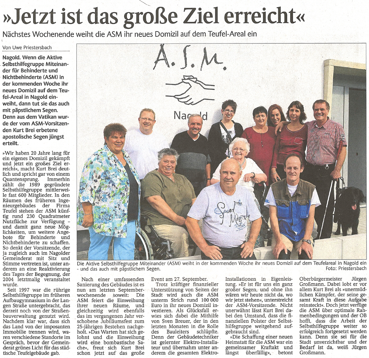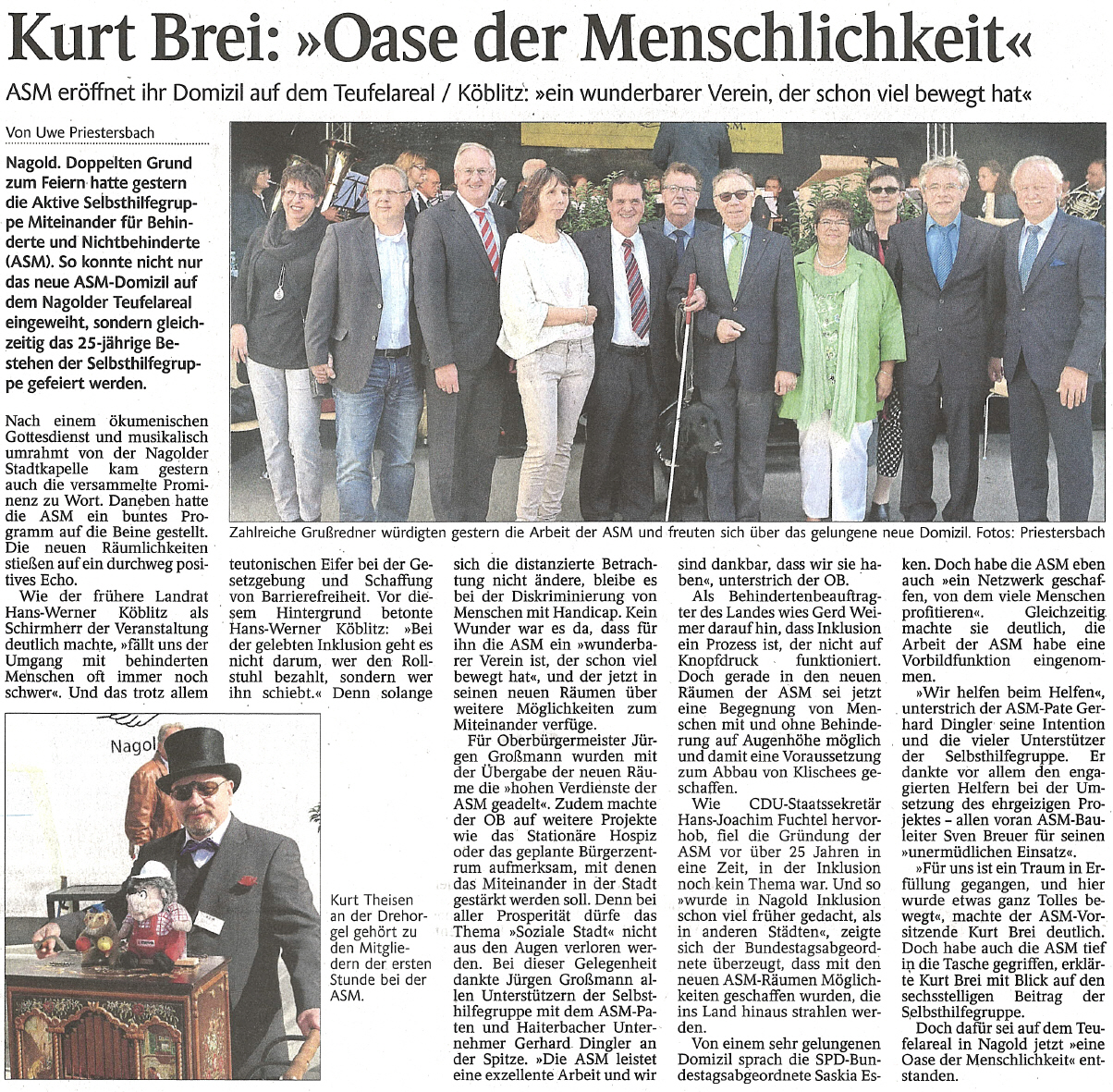 "ASM kommt dem großen Traum näher" Schwarzwälder Bote 01.06.2015 |