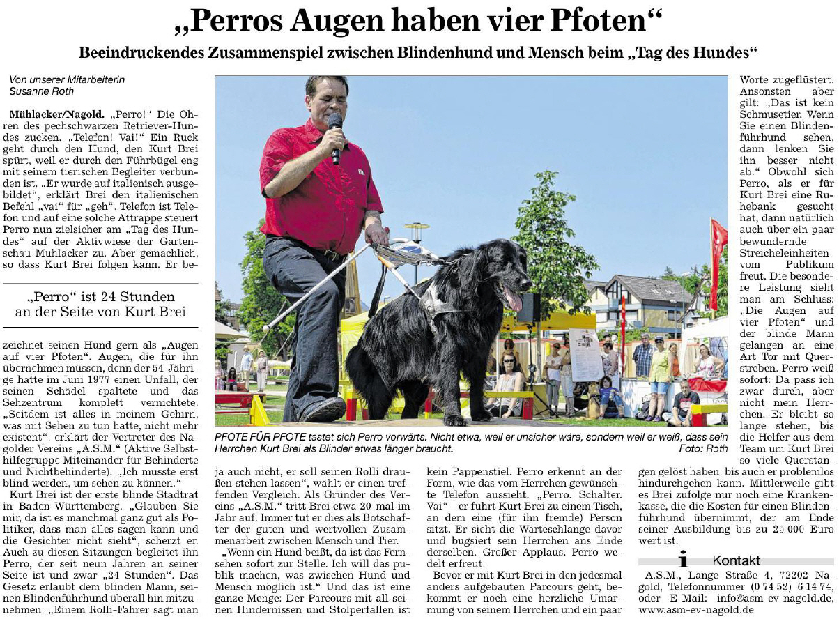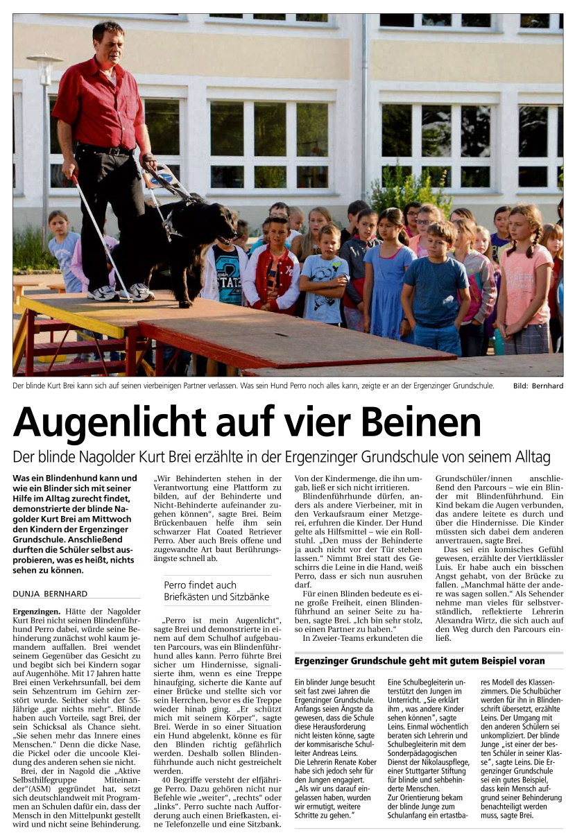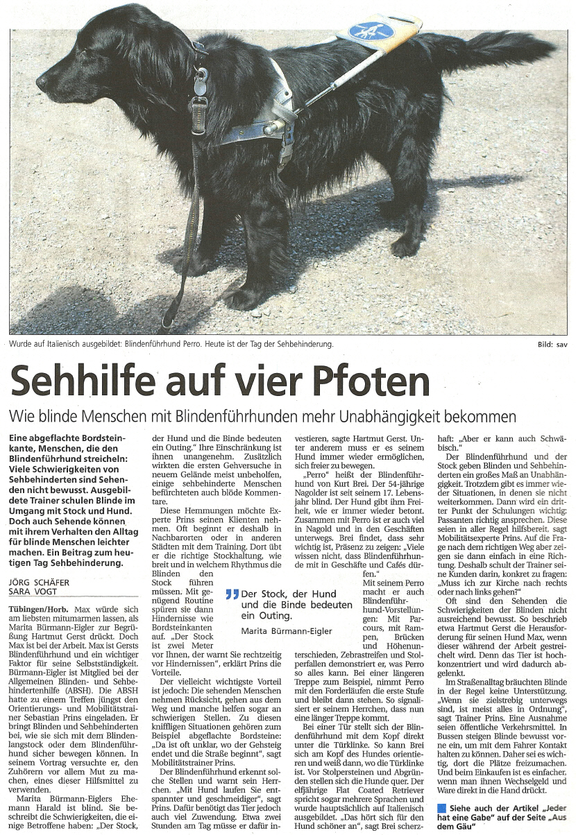 "Augenlicht auf vier Beinen" Schwäbisches Tagblatt 19.06.2015 |