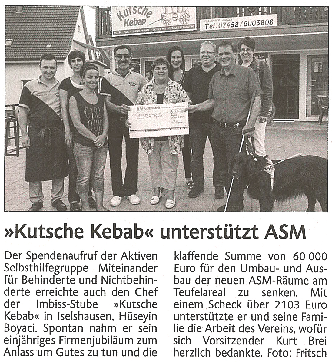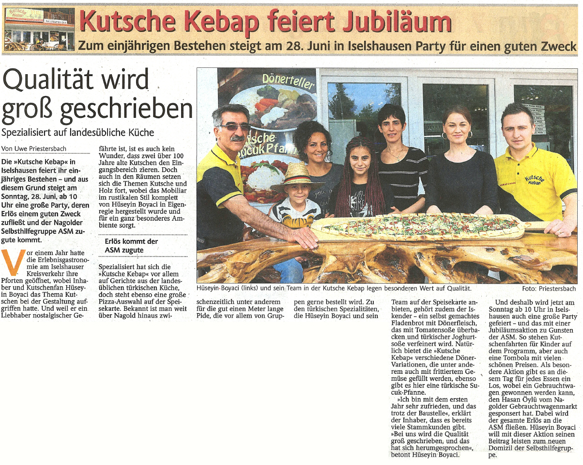 "Kutsche Kebap" unterstützt ASM 21.07.2015 Schwarzwälder Bote |