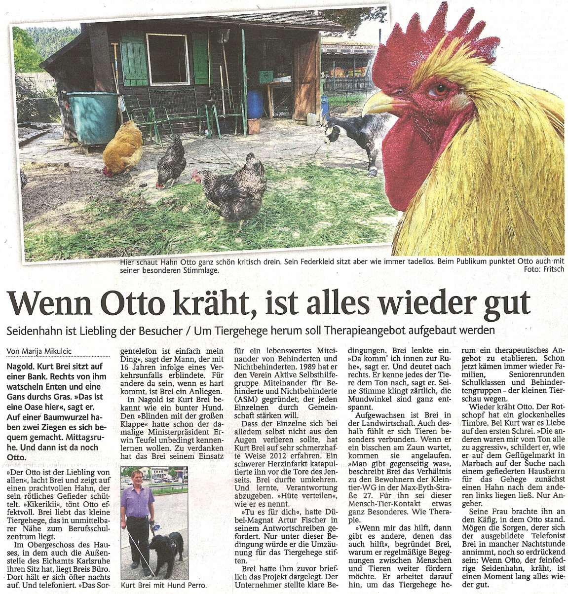 Wenn Otto kräht, ist alles wieder gut Schwarzwälder Bote 28.08.2015 |