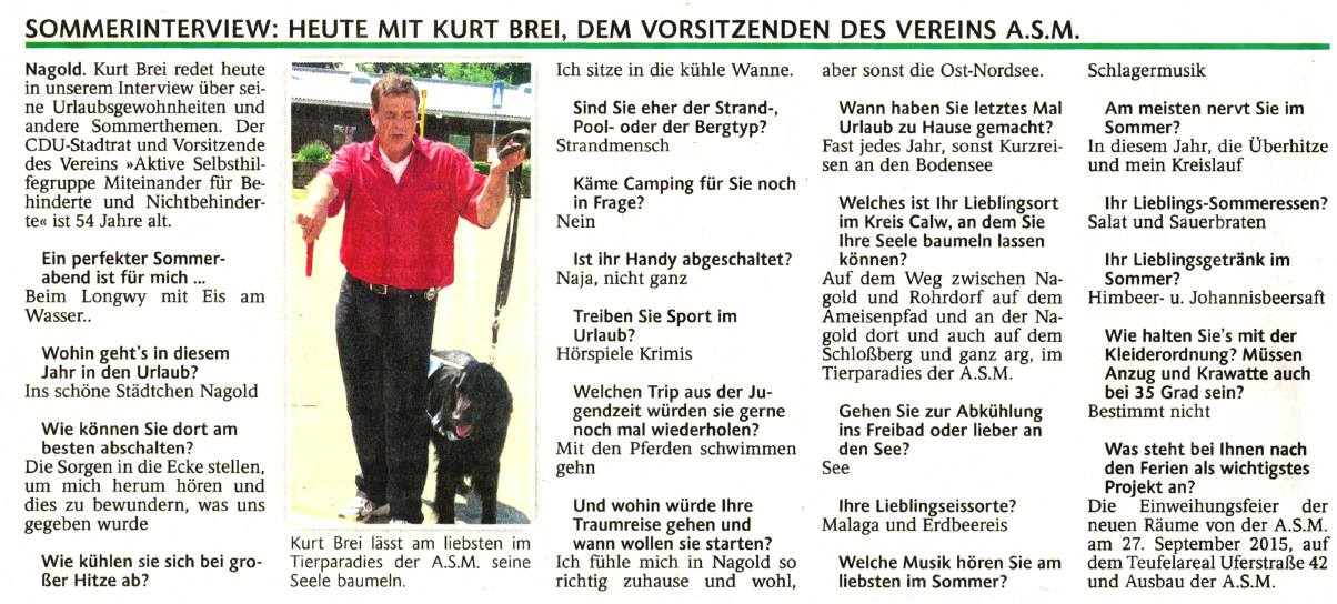 Sommerinterview: Heute mit Kurt Brei Schwarzwälder Bote 10.09.2015 |