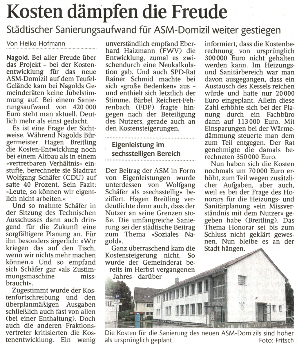 Kosten dämpfen die Freude Schwarzwälder Bote 18.09.2015 |