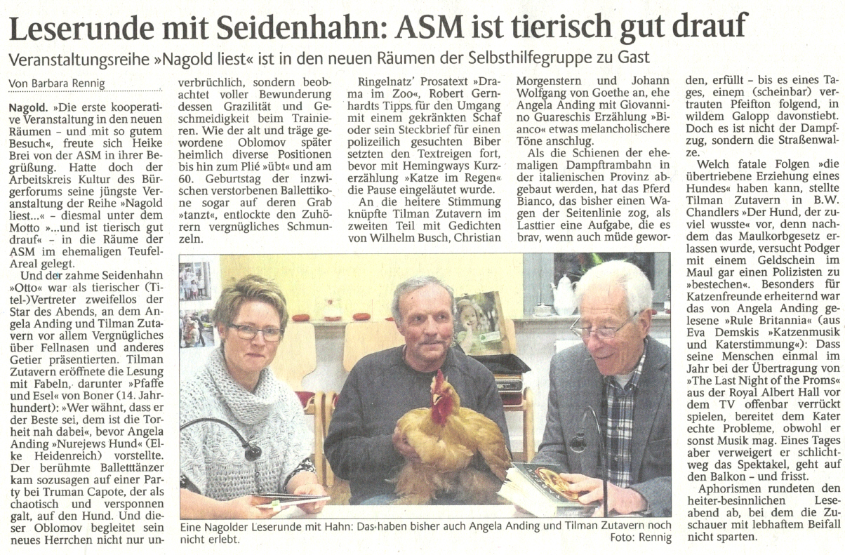 Leserunde mit Seidenhahn Schwarzwälder Bote 23.10.2015 |