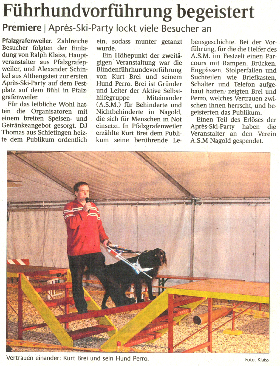 "Führhundvorführung brgeistert" Schwarzwälder Bote 07.01.2016