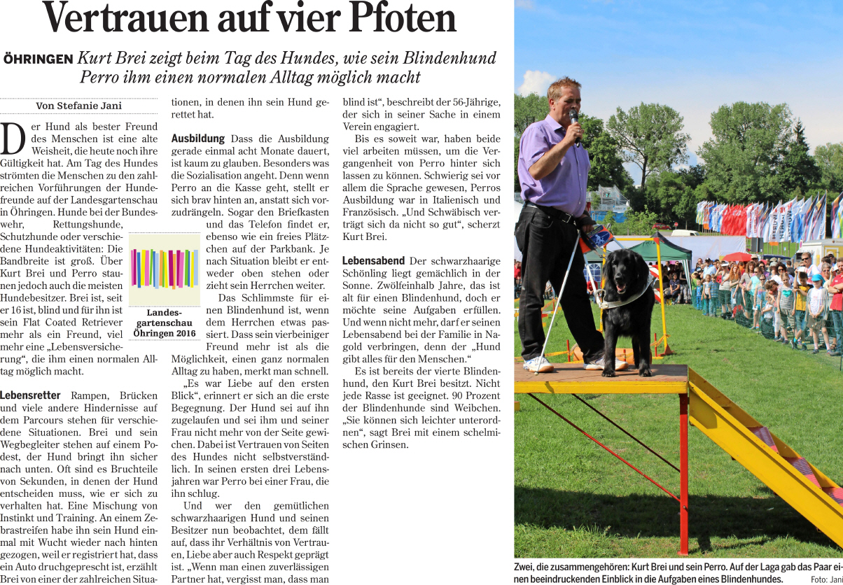 "Vertrauen auf vier Pfoten" Hohenloher Zeitung 09.06.2016