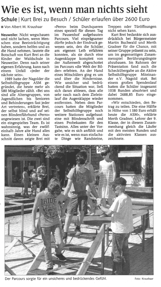 "Wie es ist, wenn man nichts sieht" Schwarzwälder Bote 22.07.2016