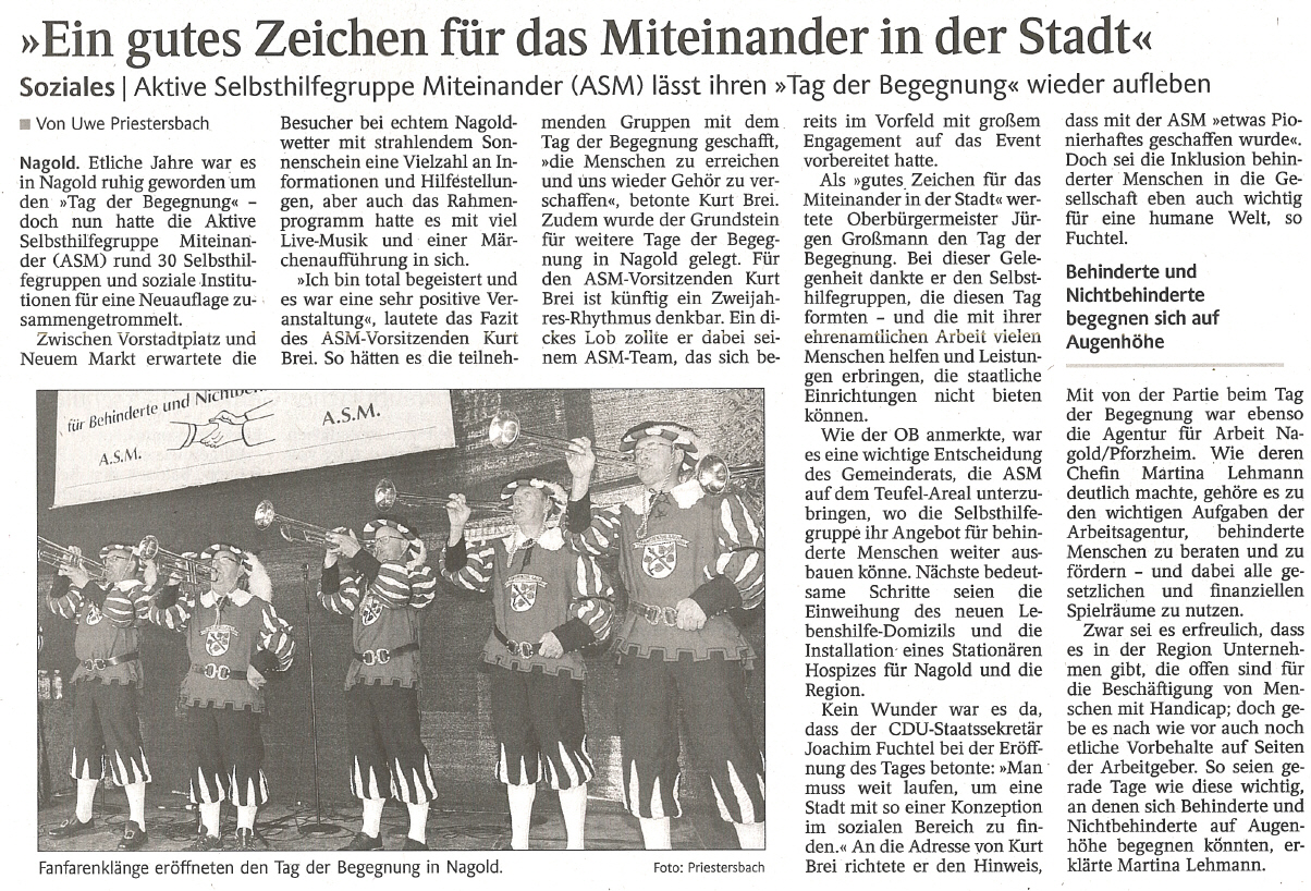 "Ein gutes Zeichen für das Miteinander..." Schwarzwälder Bote 27.09.2016
