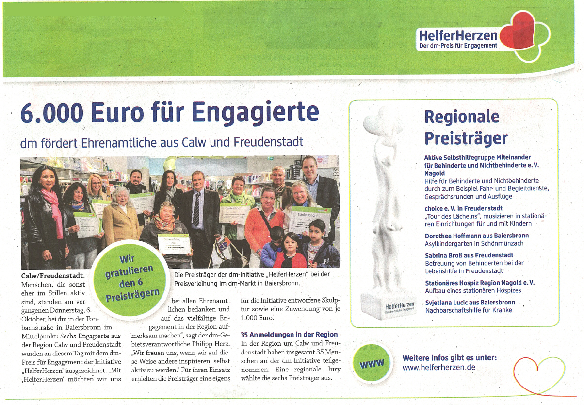 " 6.000 Euro für Engagierte WOM 12.10.2016